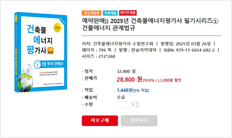 안녕하세요? 2025년 건축물에너지평가사 필기 ①과목 건물에너지 관계법규 교재 출간안내 드립니다.
