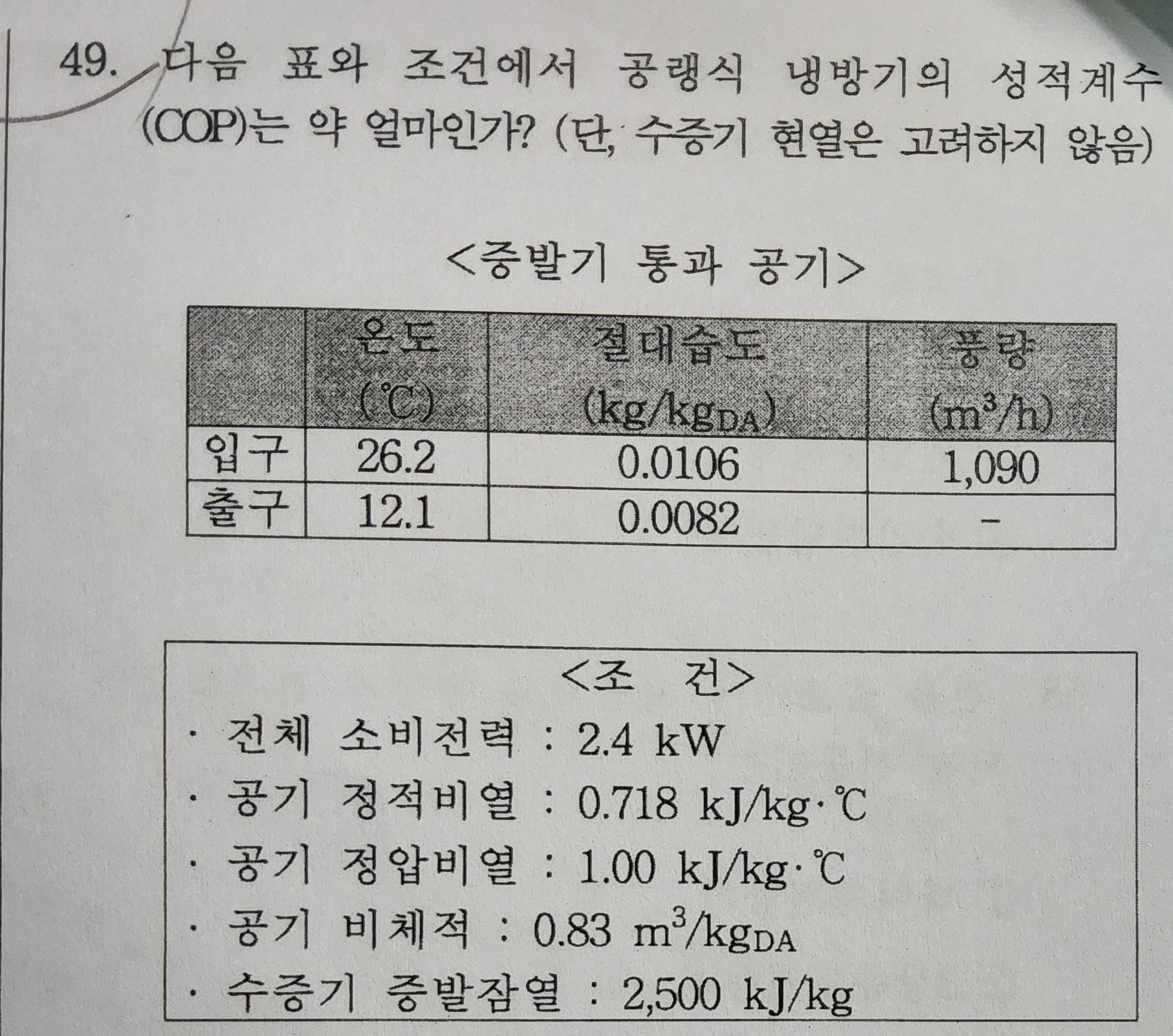 전체 냉각열량을 소비전력으로 나누어야합니다..