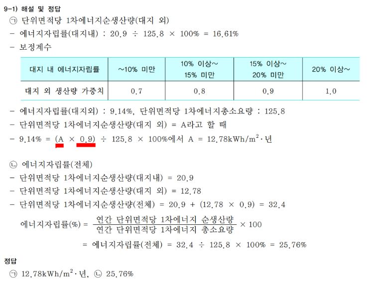 9-1-ㄴ 에너지 자립률(전체) 구하는 식 해설 관련입니다.