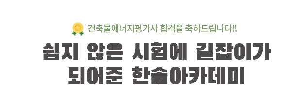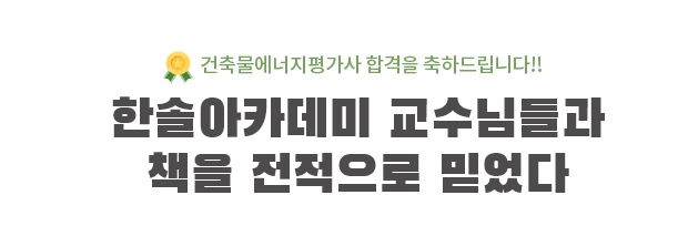 건축물에너지평가사 시험을 준비하시는 모든분들께 좋은 결과가 있으시길 바랍니다. 포기하지 마십시오. 그간 많은 도움을 주신 한솔 아카데미 교수님들께 감사드립니다. |