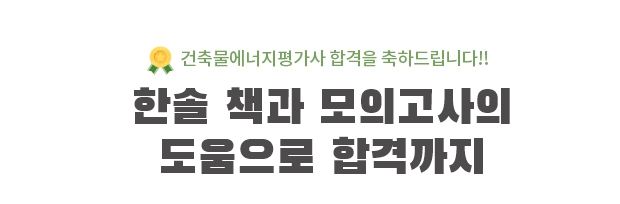 하지만 건축물에너지평가사는 기출 문제도 많지 않은 편인 데다가, 관련 실무를 했음에도 쉽지 않았던 부분도 많았습니다. 특히나 환경, 설비 분야는 구체적으로 원리나 문제 풀이를 해본 적이 없었기 때문에 한솔 아카데미 교재와 강의의 도움을 많이 받았습니다.