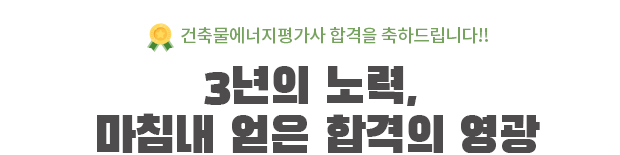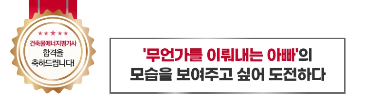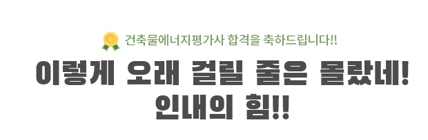 수험생 여러분 대다수가 회사에서 열심히 근무를 하시고 화목한 가정을 위해 불철주야 노력하시는 가운데 공부를 하고 계실 것입니다. 시험이 일 년에 단 한번이기 때문에 학습 스케줄에 영향을 주는 일들이 있다면 문제가 비교적 쉽게 나오더라도 준비가 부족하여 합격이 어려울 수 있습니다. 저 또한 예상하지 못한 업무의 발생과 가정에서 피치 못할 사정이 생기는 등 시험기간에 많은 변수가 있었습니다. 저에게 건축물에너지평가사 합격은 매해 1순위 목표였지만 회사와 가정에서 제가 맡은 일에도 빈틈이 없어야 했기에 불합격 할 때마다 가슴은 아팠지만 “올해 그래도 열심히 살았다.” 하며 자신을 위로 하였습니다. 건축물에너지평가사의 꿈을 꾸게 된 것도 우리 가족과 더욱 행복한 삶을 살기 위함이었습니다. 부모님께서 건강하시고 아이가 무럭무럭 잘 자라주었으며 아내가 수험기간 내내 적극 지지해 주었기에 포기하지 않고 공부할 수 있었습니다. 건축물에너지평가사 합격 이후 저의 삶이 어떻게 변화할지 아직은 알 수 없지만 언제나 저의 종착지는 가족입니다. 응원해주고 믿고 기다려준 가족에게 감사의 인사를 올립니다. 이제 다음 목표를 향해 다시 뛰겠습니다. 긴 글을 읽어 주셔서 감사합니다. 시험을 준비하시는 선생님들께서 모두 목표를 이루시어 함께 만날 날을 고대하겠습니다. |