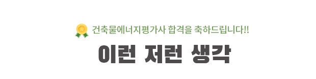 ■ 관련분야에 종사하면서 건축물에너지평가사 자격증 취득에 대해 고민하게 되었습니다. 해당 자격증을 취득했을 때 ‘향후 진로에 도움이 될 것인가?’ ‘업무에 도움이 될 것인가“ 여러 고민을 하다 ’일단 취득하고 나서 고민해도 늦지 않겠다.’고 생각을 하게 되어 자격증 공부를 시작하였습니다. 건축물에너지효율등급이나 제로에너지건축물 인증평가 업무를 진행하시거나 관련기관에서 업무를 진행할 분이시라면 해당자격증을 반드시 취득하셨으면 좋겠습니다. 저처럼 관련분야에는 종사하나 인증평가업무를 진행하지 않으시는 경우, 자격증 취득에 다양한 선택지가 있을 것이라고 생각되지만 건축물에너지평가사 자격취득 과정에서 학습하게 되는 건축물에너지 인증평가 업무의 흐름, 평가방법 그리고 관련법령 및 규정에 대한 내용은 업계 종사자에게 매우 유익한 내용이기 때문에 해당 자격증 공부를 매우 추천 드리고 싶습니다.