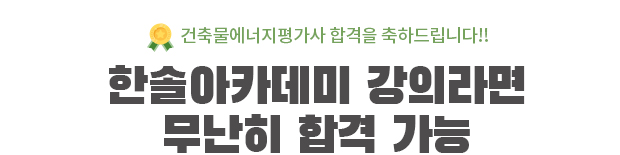 시공사 기계팀장으로 종사하면서 2020년 한솔아카데미 건축설비기사 조성안 강사님 강의를 듣고 무난히 당해차 합격한게 한솔과의 인연이었네요. 조금 더 상위 자격증을 가지고 싶은 욕심에 한솔에서 강의 하는 건축물에너지평가사를 도전하기로 결심 하였습니다.