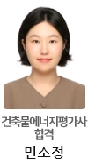 안녕하세요. 2024년 10회차 건축물에너지평가사 합격자 민소정입니다. 저는 실내건축학과를 졸업하고 건축기사를 취득하여 친환경 컨설팅 회사에서 근무했습니다. 실무를 하면서 건축물에너지평가사가 있으면 업계에서 유리하지 않을까? 그리고 저를 증명할 수 있는 하나의 수단이라는 생각으로 나름 열심히 공부했는데요. 학부를 실내 건축을 졸업하여 사실 건축기사 공부할 때부터 부족한 점이 많았습니다. 학교에서 배우지 못했던 부분을 공부하려니 막막했던 점도 많았고 기사 시험에 익숙해지는 데에도 시간이 조금 걸렸는데요, 그 시절 기사 공부했던 습관과 관성이 에너지 평가사를 공부하면서도 도움이 되었던 것 같습니다.