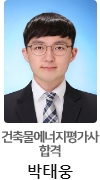 안녕하세요, 제10회 건축물에너지평가사 합격자 박태웅입니다. 앞선 합격자들의 합격 수기를 보며 꼭 나도 취득하고 싶다고 생각해왔는데 합격 후 이렇게 합격 수기를 남길 수 있다는 점이 참 뿌듯합니다.